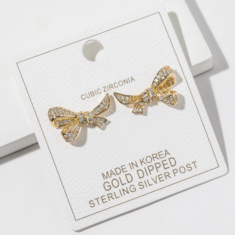 Gold Dipped CZ Pave Bow Knot Stud Earrings