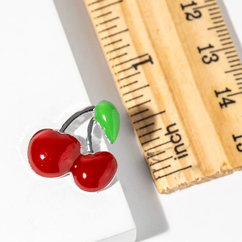 • Playful cherry stud earrings featuring a glossy fruit-inspired silhouette with a smooth leaf accent. These charming studs add a fun, youthful touch to everyday outfits while remaining easy to style for casual looks, seasonal collections, or novelty jewelry displays that need a lighthearted yet polished statement.