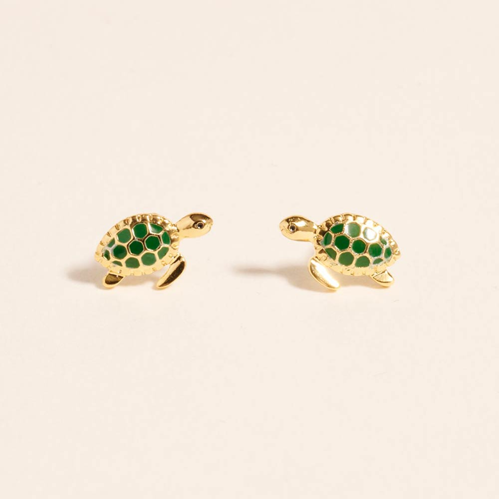 Details • Size : 0.25" X 0.25" • Post Back • Sea turtle stud earrings inspired by ocean life and slow, mindful living. These petite studs add a playful coastal accent to everyday outfits, vacation looks, and giftable jewelry displays. Ideal for beach themes, summer styling, and animal-inspired collections. • Hypoallergenic • Made In Korea • Gold Dipped