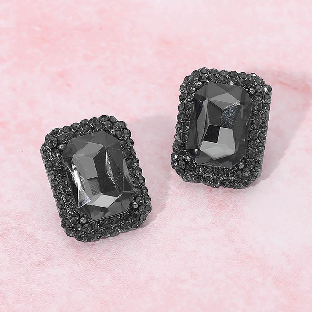 Details • Size : 0.7" X 0.75" • Post Back • Make a statement with these iridescent rectangular stud earrings. Framed with sparkling rhinestones, they’re the perfect accessory for adding refined glamour to any outfit, from formal events to everyday chic. • Lead and Nickel Compliant