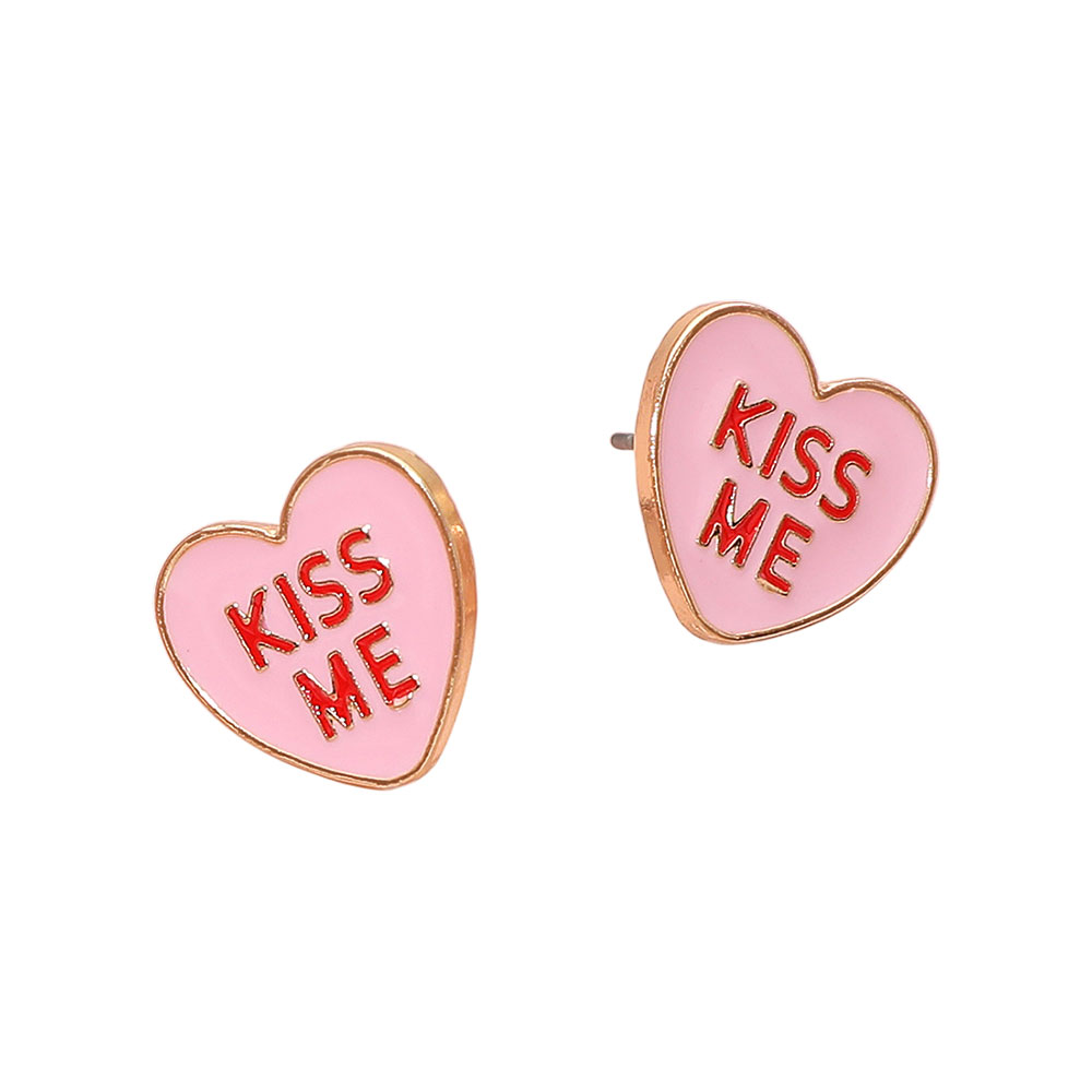 • Playful heart stud earrings featuring a bold “Kiss Me” motif in a clean, modern silhouette designed to stand out without overpowering your look. Ideal for everyday wear or flirty nights out, these lightweight studs add charm, personality, and a fun romantic accent to casual outfits or dressier styles.