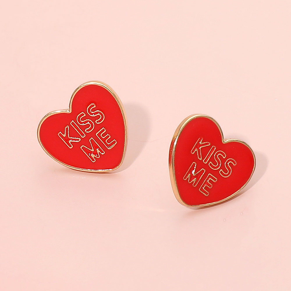 Details • Size : 0.6" X 0.6" • Post Back • Playful heart stud earrings featuring a bold “Kiss Me” motif in a clean, modern silhouette designed to stand out without overpowering your look. Ideal for everyday wear or flirty nights out, these lightweight studs add charm, personality, and a fun romantic accent to casual outfits or dressier styles. • Lead and Nickel Compliant