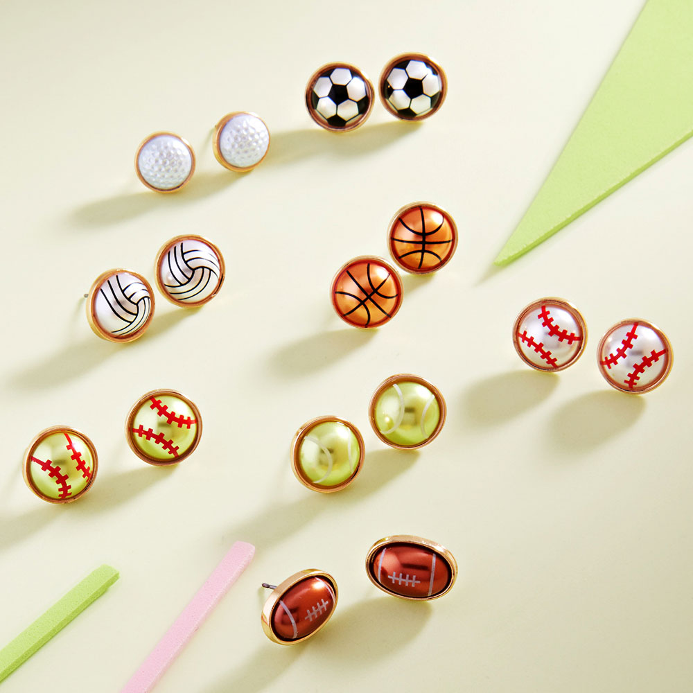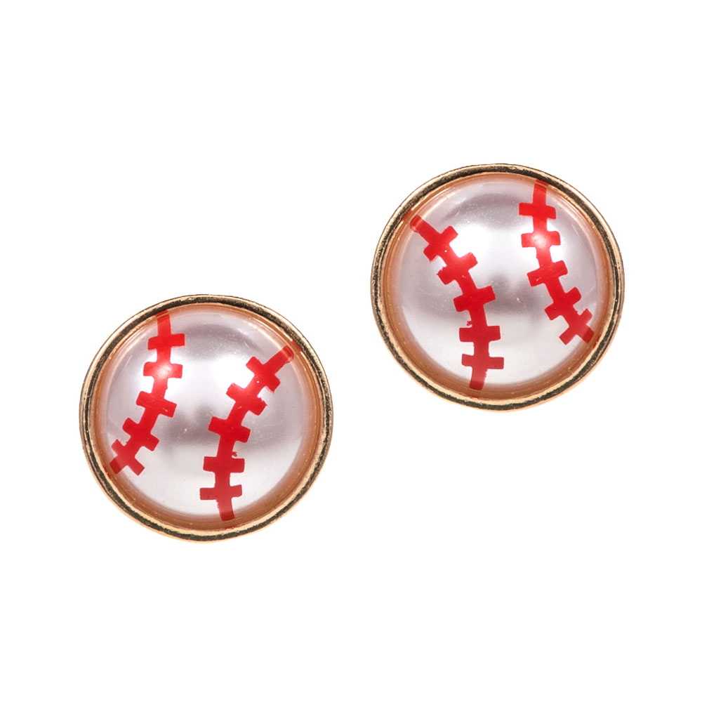 Details • Size : 0.6" X 0.6" • Titanium Post Back • Fun baseball stud earrings designed with a classic stitched ball motif for sporty, everyday appeal. Lightweight and easy to wear, these studs are perfect for game day outfits, casual looks, team events, and gifting, adding playful character to boutique accessory collections and fan-focused styling. • Hypoallergenic • Lead and Nickel Compliant