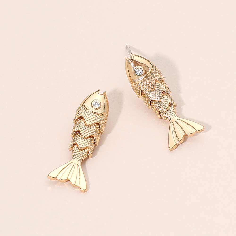 Rhinestone Accent Articulated Fish Stud Earrings Rhinestone Accent Articulated Fish Stud Earrings