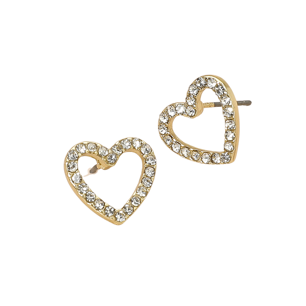 • Open heart stud earrings featuring a sparkling pavĂ© outline design that adds subtle shine without overwhelming your look. A timeless romantic style ideal for everyday wear, gifting, or boutique assortments seeking delicate statement earrings with modern charm and versatile appeal.