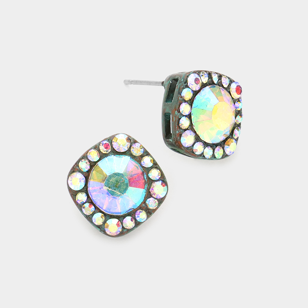 Round Stone Accented Stud Evening Earrings