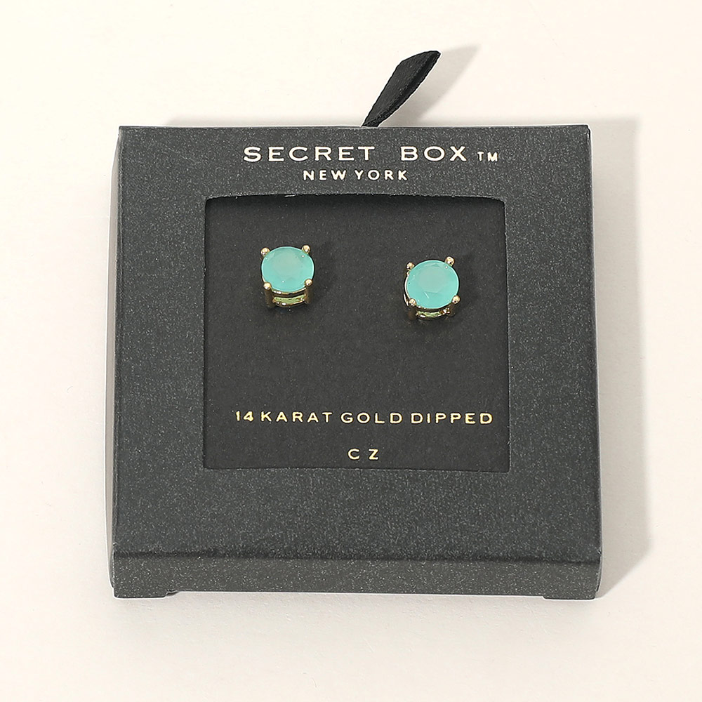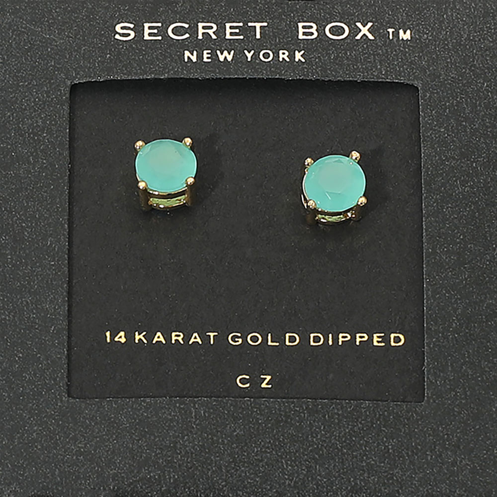 SECRETt BOX_14K Gold Dipped CZ Round Stud Earrings