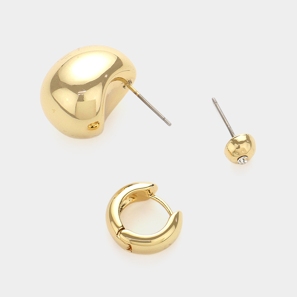 SECRET BOX_Gold Dipped Metal Hoop Stud 3 Pairs Earrings