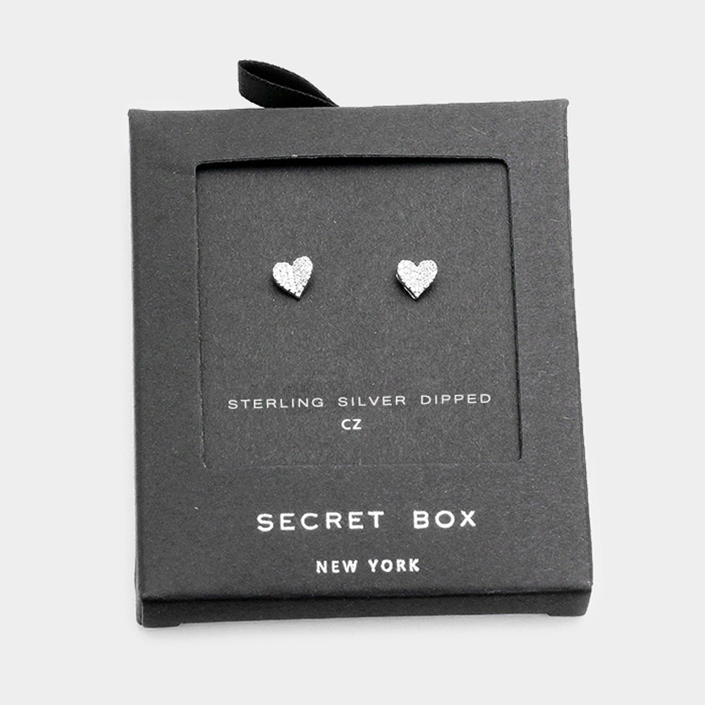 Secret Box _ Sterling Silver Dipped CZ Heart Stud Earrings