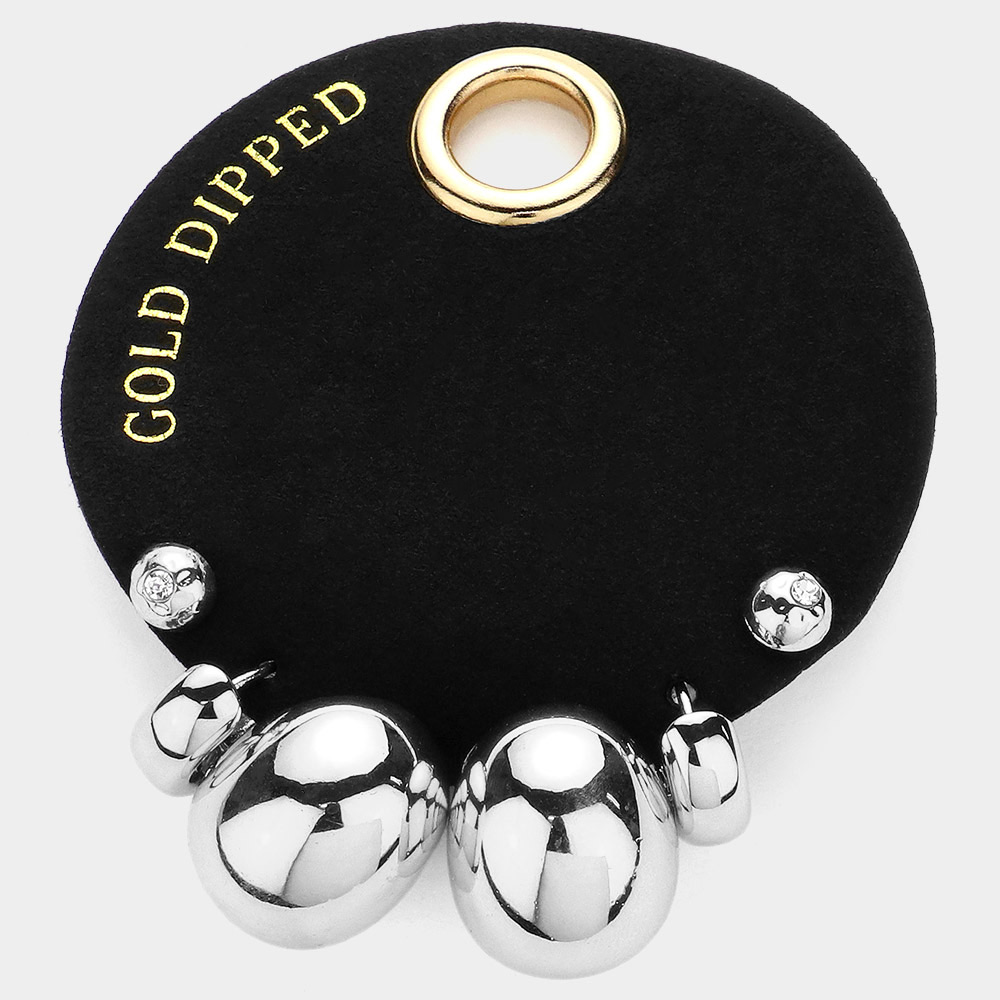 SECRET BOX_Gold Dipped Metal Hoop Stud 3 Pairs Earrings