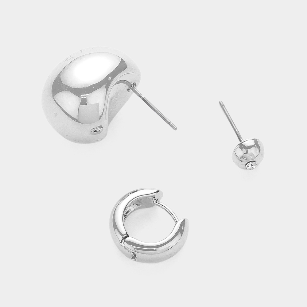 SECRET BOX_White Gold Dipped Metal Hoop Stud 3 Pairs Earrings