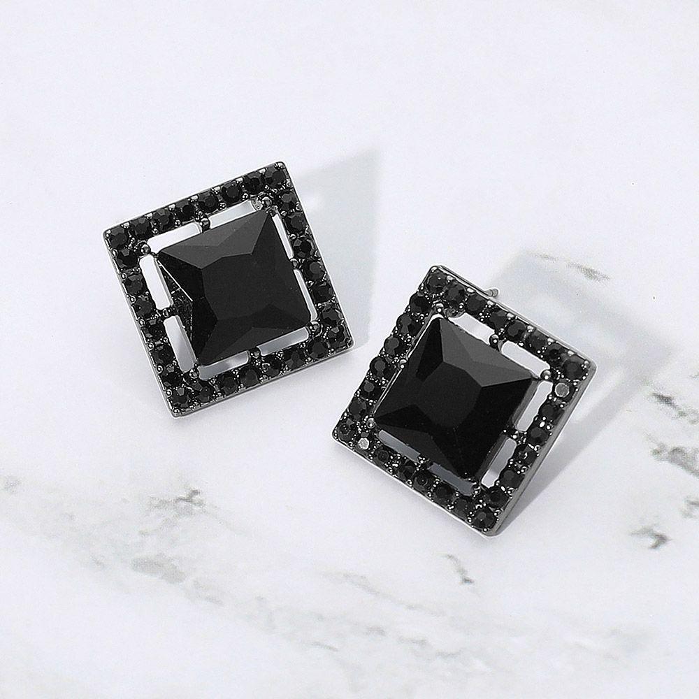 • Elegant square-cut gemstone stud earrings featuring a framed design with sparkling accent stones. A chic and modern accessory that adds refined shine to both everyday outfits and special occasions.
