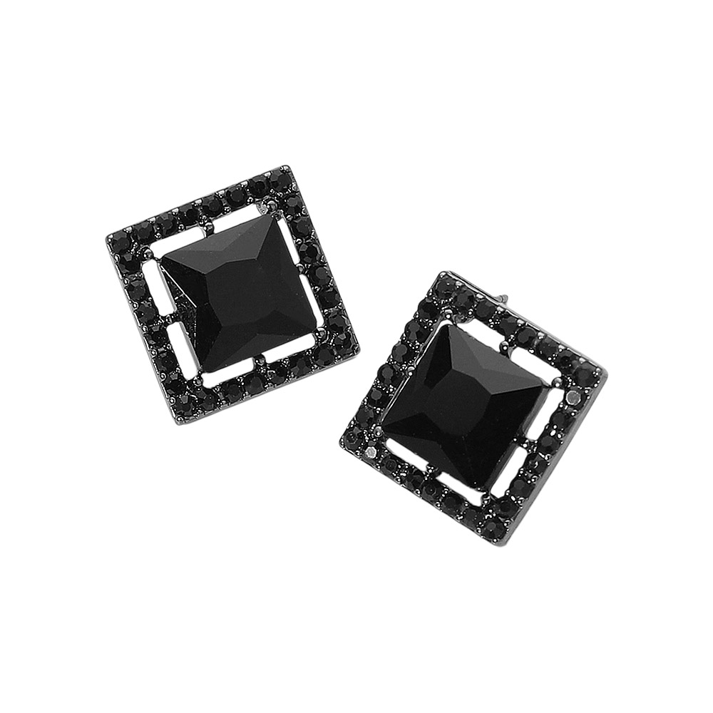 Square Cut Gemstone Framed Evening Stud Earrings