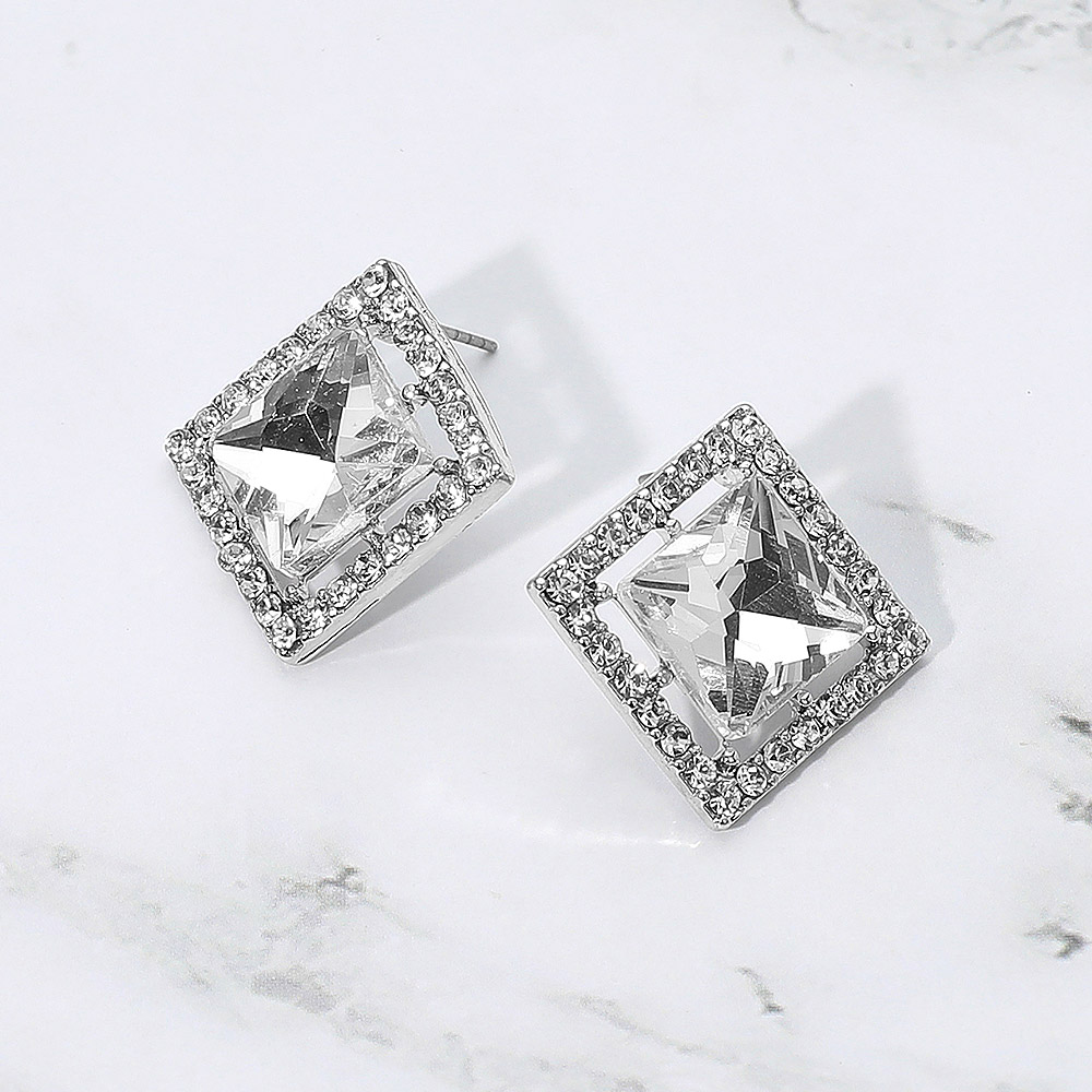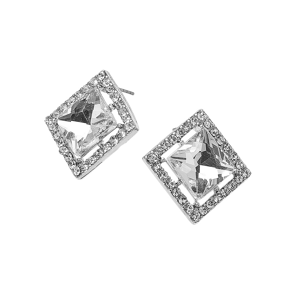 Square Cut Gemstone Framed Evening Stud Earrings Square Cut Gemstone Framed Evening Stud Earrings