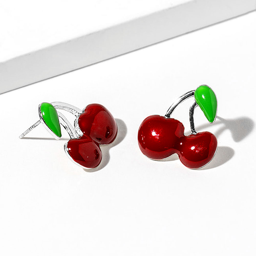 • Playful cherry stud earrings featuring a glossy fruit-inspired silhouette with a smooth leaf accent. These charming studs add a fun, youthful touch to everyday outfits while remaining easy to style for casual looks, seasonal collections, or novelty jewelry displays that need a lighthearted yet polished statement.