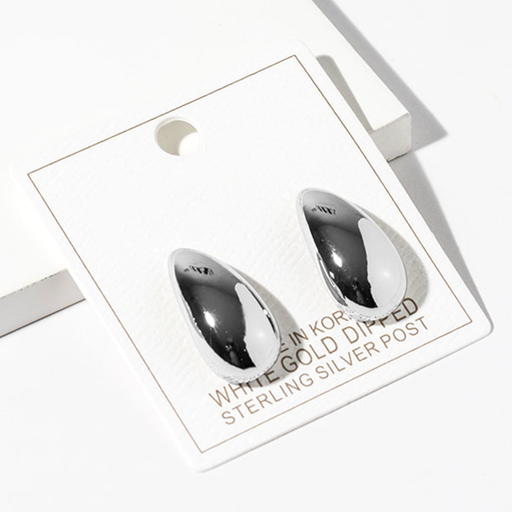 White Gold Dipped Polished Teardrop Stud Earrings