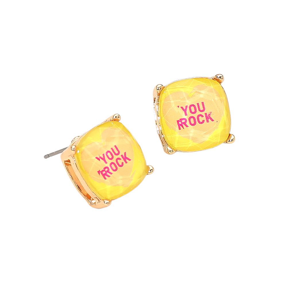 YOU ROCK Message Heart Square Cushion Stud Earrings YOU ROCK Message Heart Square Cushion Stud Earrings YOU ROCK Message Heart Square Cushion Stud Earrings