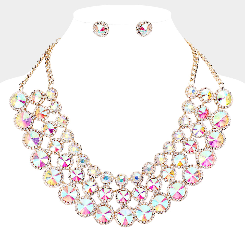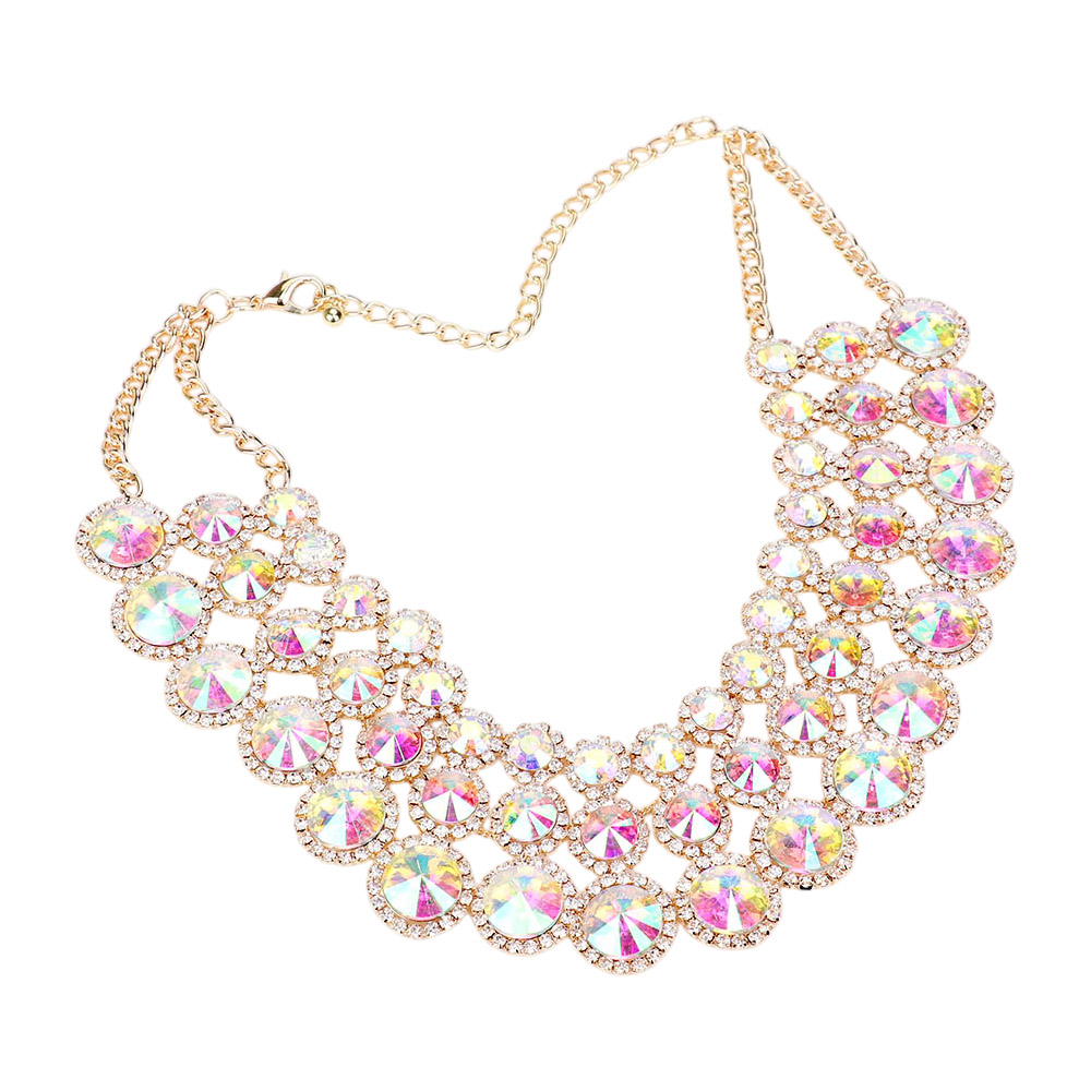 Oval Round Glass Stone Cluster Beaded Stretch Evening Bracelet
