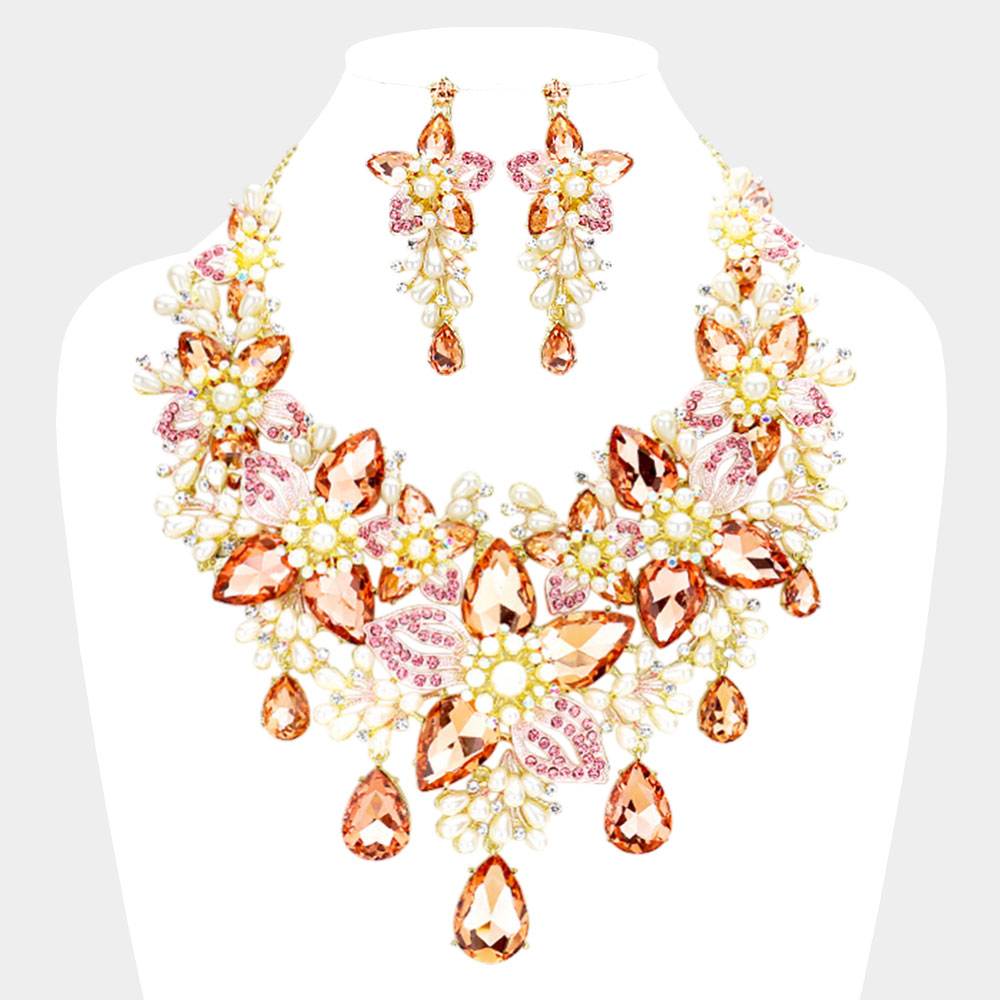 Details • Necklace Size : 17" + 3" L • Decor Size : 5" L • Earring Size : 3" L • This dazzling jewelry set showcases an intricate floral arrangement of sparkling accents and delicate detailing for a truly show-stopping look. Designed to elevate special-occasion outfits, it adds dramatic elegance and unforgettable shimmer to any formal ensemble.