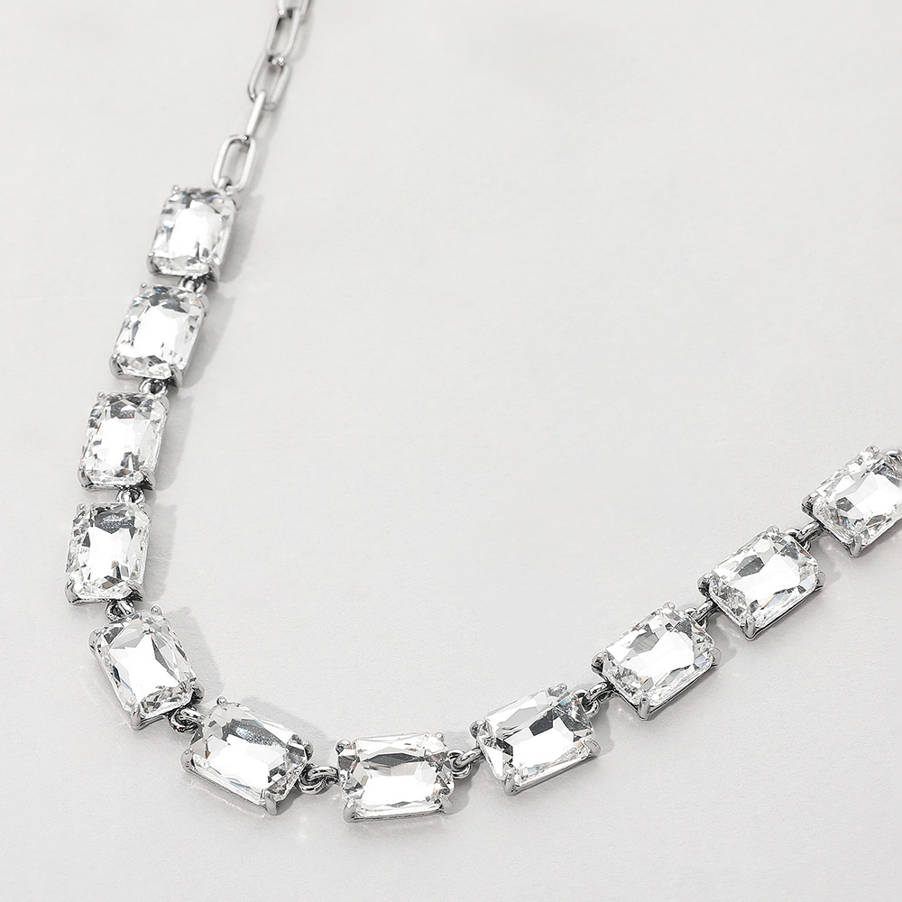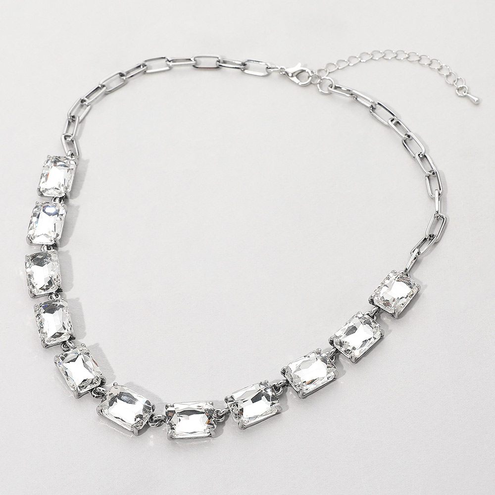 Cushion Rectangular Stone Cluster Link Evening Necklace