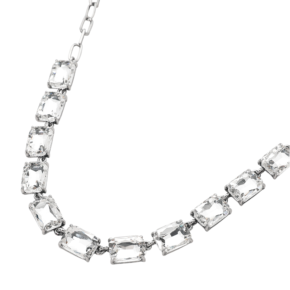 Details • Necklace Size : 16" + 2.5" L • Decor Size : 0.4" L • This elegant gemstone chain necklace features a row of precisely cut stones linked with a sleek chain for a refined, modern look. Its adjustable closure ensures a comfortable fit, making it a sophisticated accessory for formal occasions, evening wear, or adding a statement touch to everyday style. • Lead and Nickel Compliant