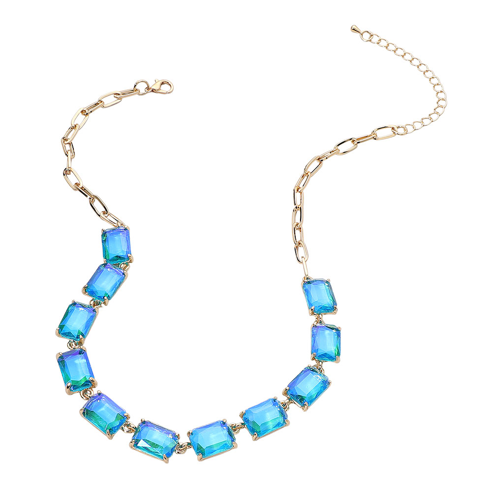 • This elegant gemstone chain necklace features a row of precisely cut stones linked with a sleek chain for a refined, modern look. Its adjustable closure ensures a comfortable fit, making it a sophisticated accessory for formal occasions, evening wear, or adding a statement touch to everyday style.