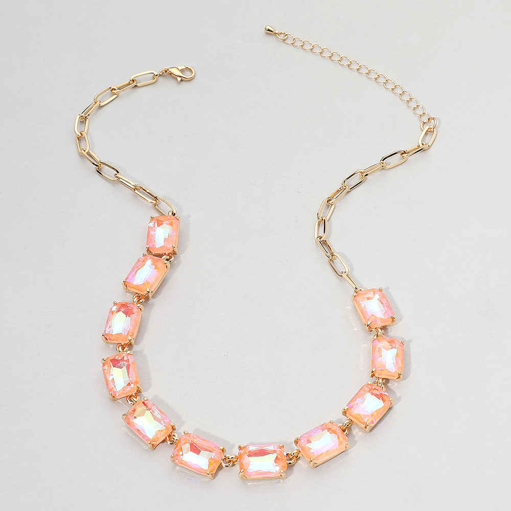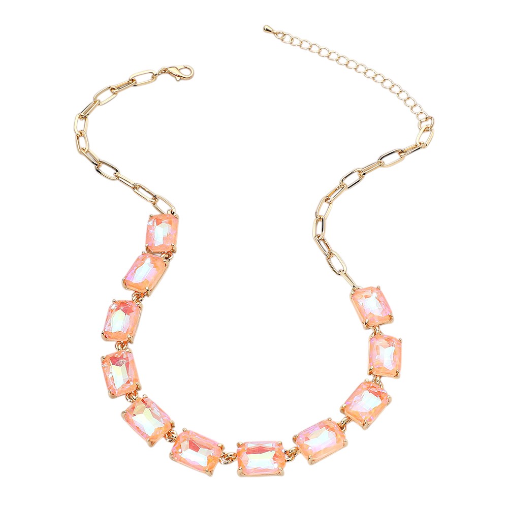 Cushion Rectangular Stone Cluster Link Evening Necklace