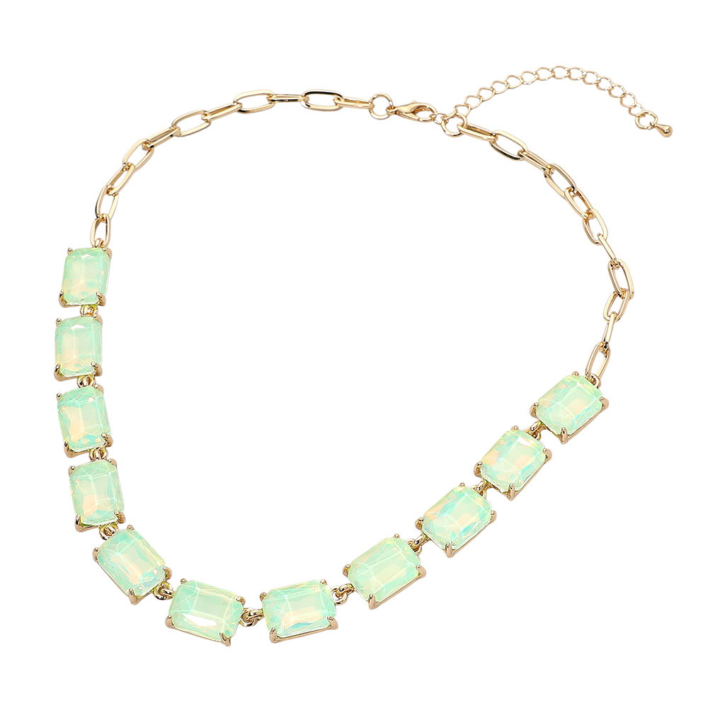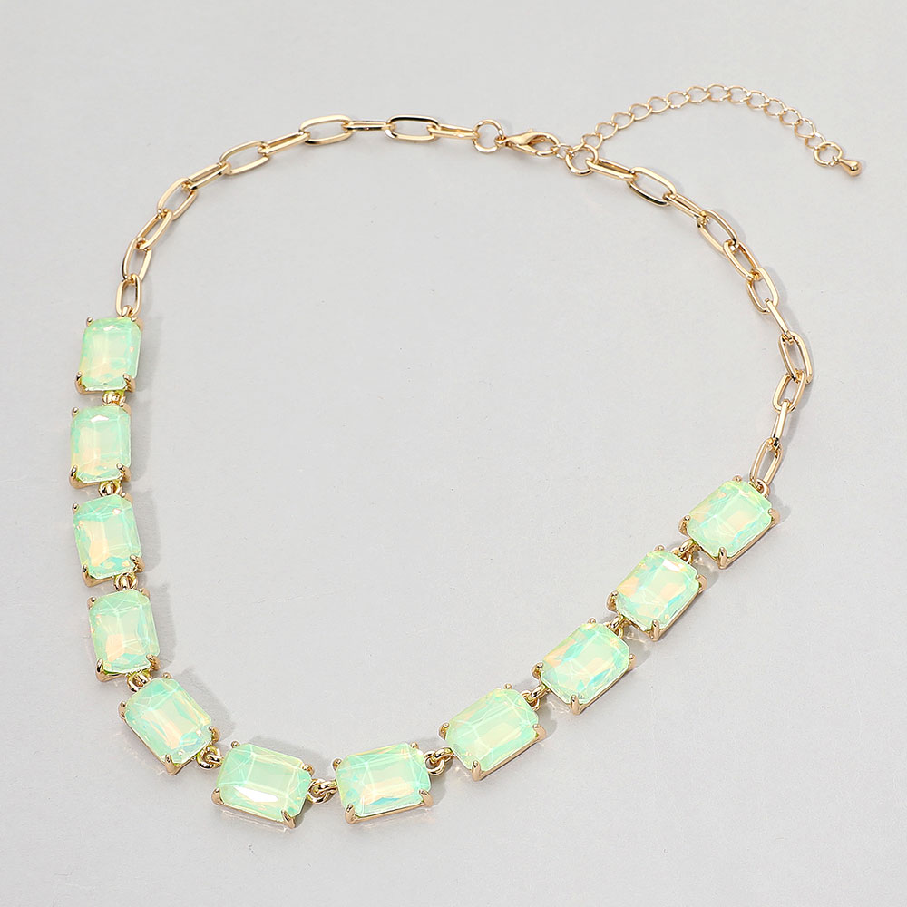 • This elegant gemstone chain necklace features a row of precisely cut stones linked with a sleek chain for a refined, modern look. Its adjustable closure ensures a comfortable fit, making it a sophisticated accessory for formal occasions, evening wear, or adding a statement touch to everyday style.
