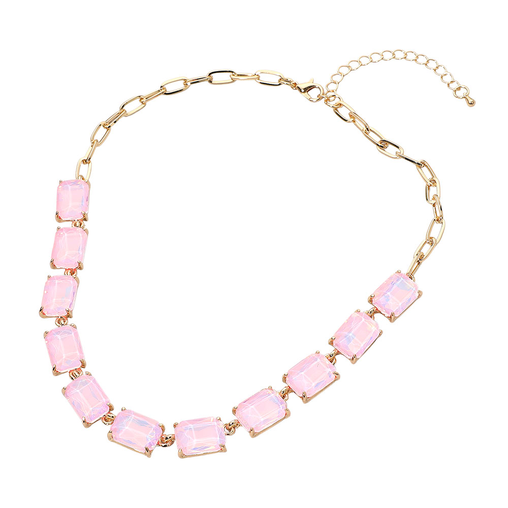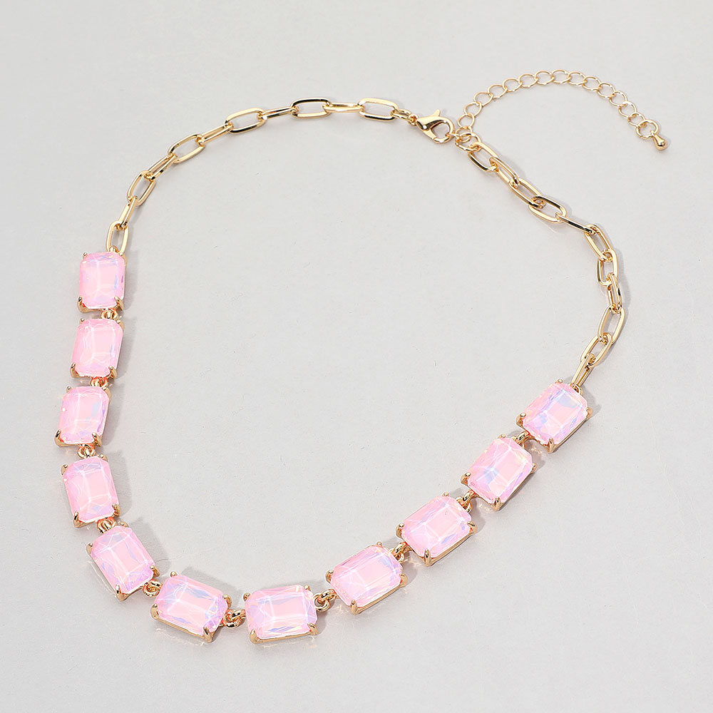 Cushion Rectangular Stone Cluster Link Evening Necklace