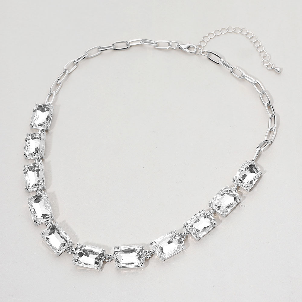 Cushion Rectangular Stone Cluster Link Evening Necklace