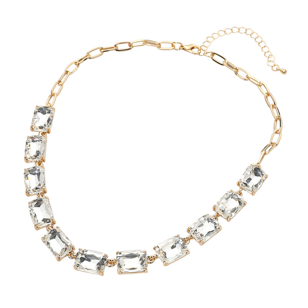 Cushion Rectangular Stone Cluster Link Evening Necklace