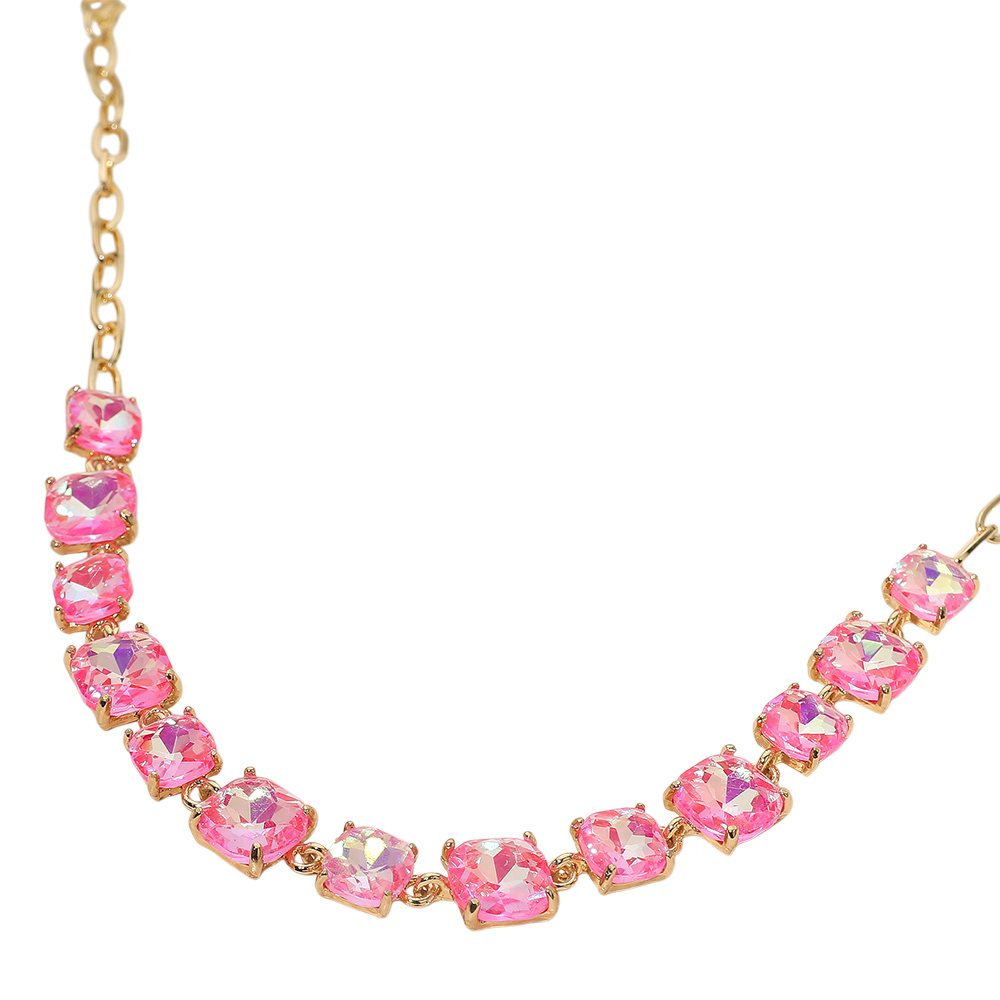 • Elevate your style with this stunning square cut gemstone statement necklace. Featuring shimmering faceted stones linked in a classic design, it offers a chic adjustable fit. Perfect for evening wear, weddings, parties, or adding a sophisticated sparkle to your everyday look.