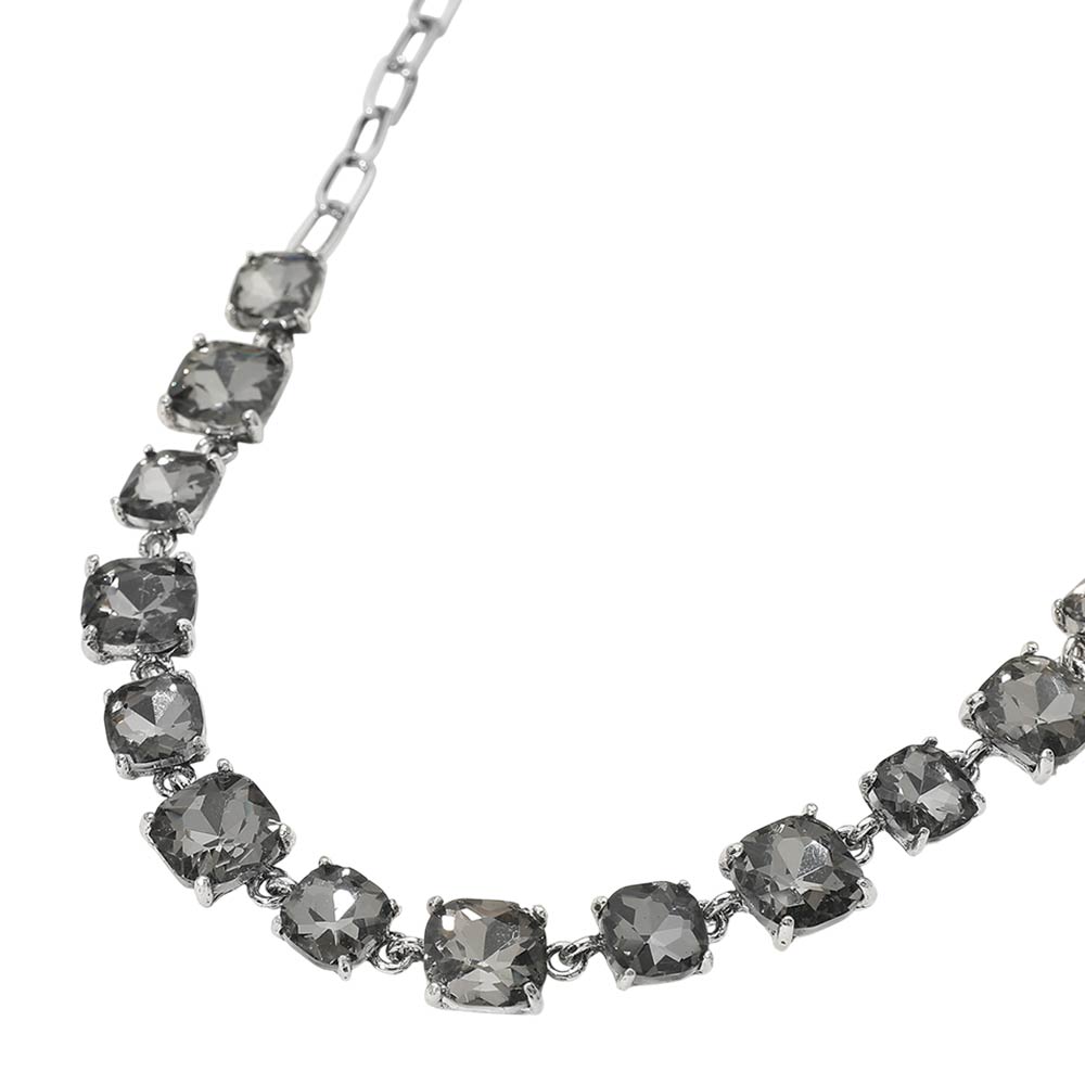 Details • Necklace Size : 16" + 2.75" L • Decor Size : 0.5" L • Elevate your style with this stunning square cut gemstone statement necklace. Featuring shimmering faceted stones linked in a classic design, it offers a chic adjustable fit. Perfect for evening wear, weddings, parties, or adding a sophisticated sparkle to your everyday look. • Lead and Nickel Compliant