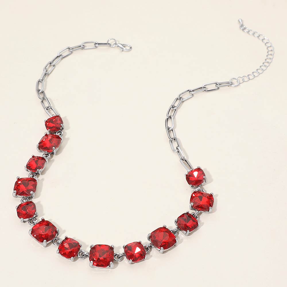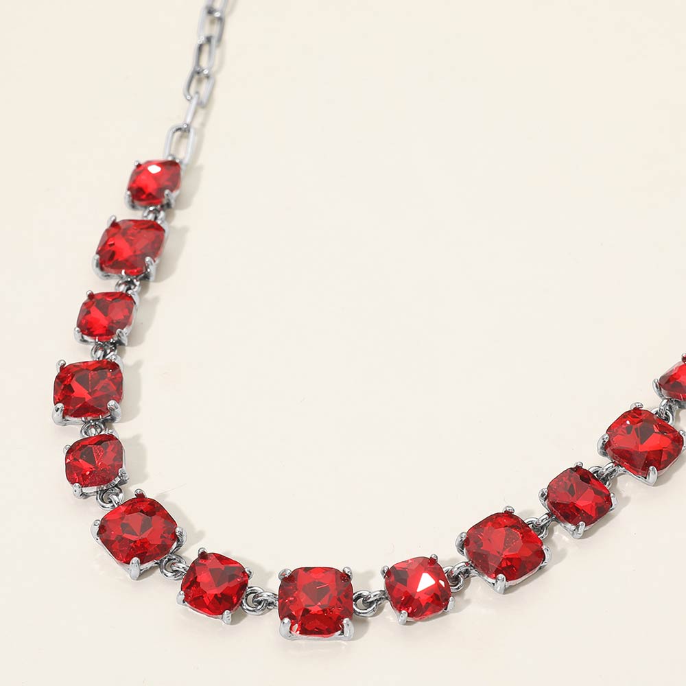 • Elevate your style with this stunning square cut gemstone statement necklace. Featuring shimmering faceted stones linked in a classic design, it offers a chic adjustable fit. Perfect for evening wear, weddings, parties, or adding a sophisticated sparkle to your everyday look.