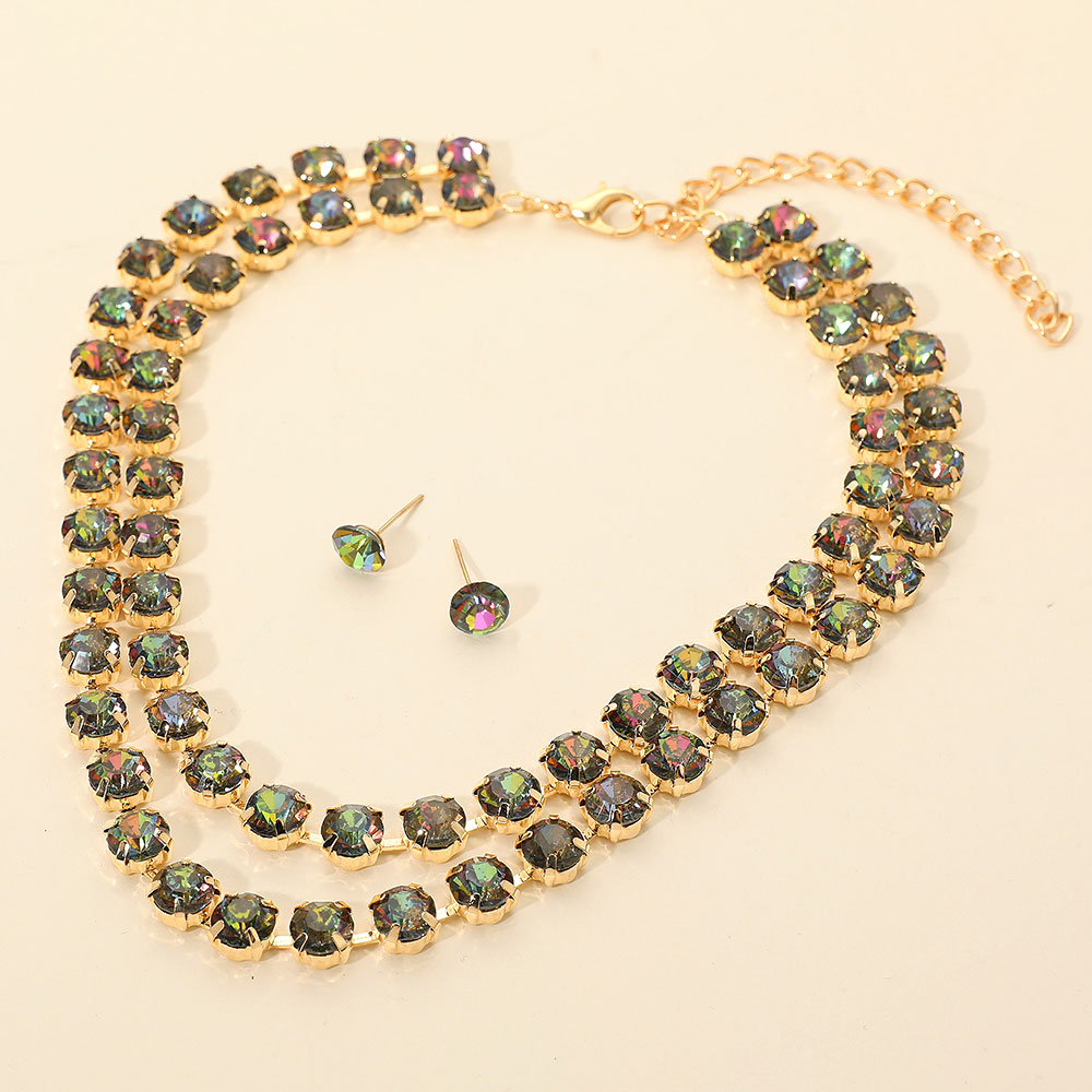 • This double row rhinestone necklace and matching stud earring set adds radiant sparkle to any outfit. Designed to enhance both casual and formal looks, it delivers timeless elegance and refined glamour—perfect for evening events, special occasions, or adding shine to everyday wear.