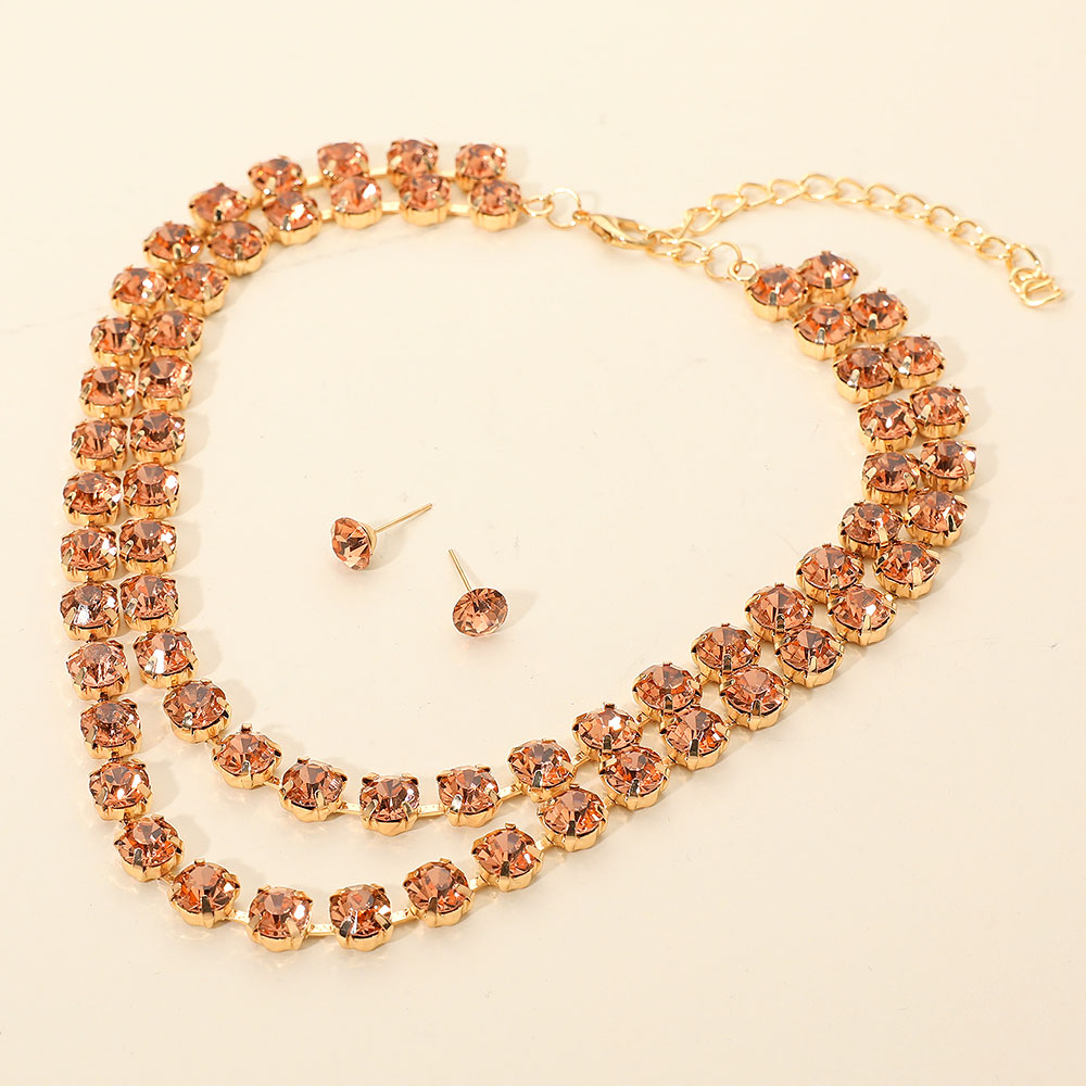 • This double row rhinestone necklace and matching stud earring set adds radiant sparkle to any outfit. Designed to enhance both casual and formal looks, it delivers timeless elegance and refined glamour—perfect for evening events, special occasions, or adding shine to everyday wear.