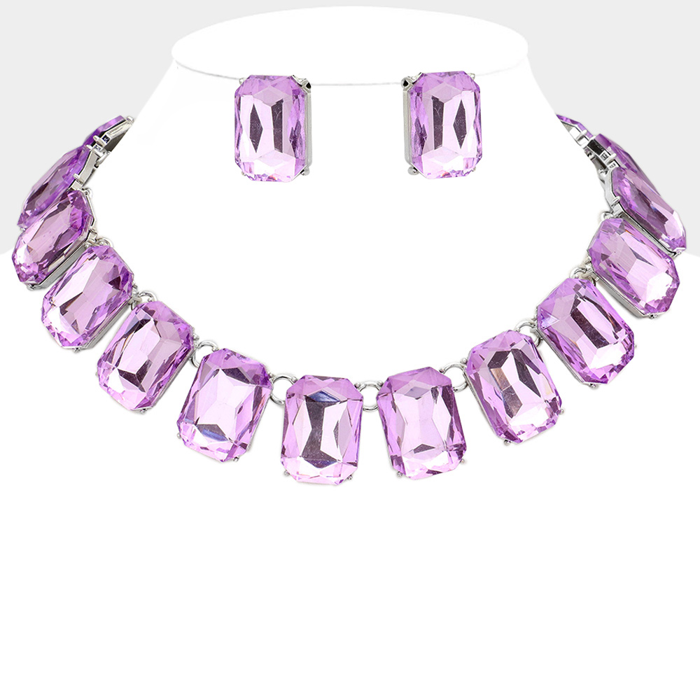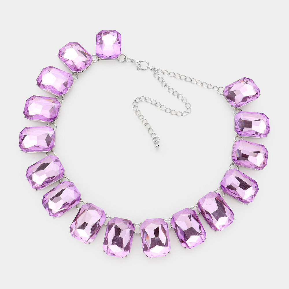 Emerald Cut Stone Link Evening Necklace