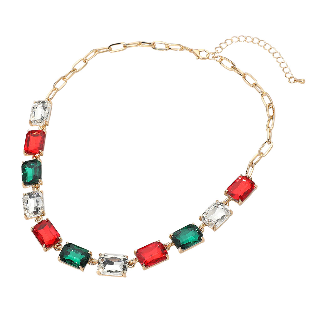Cushion Rectangular Stone Cluster Link Evening Necklace