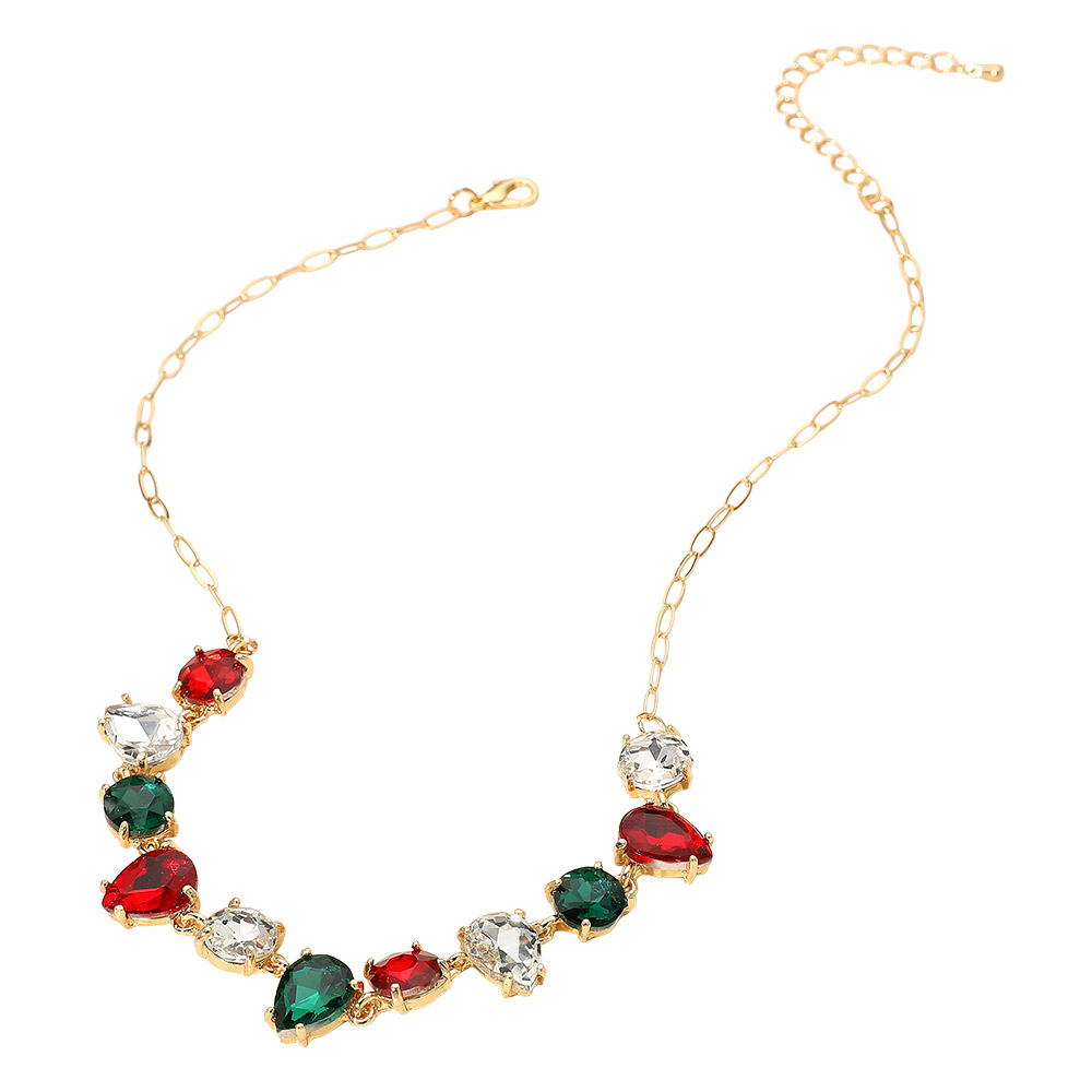 Holiday Cushion Teardrop Round Oval Stone Link Evening Necklace