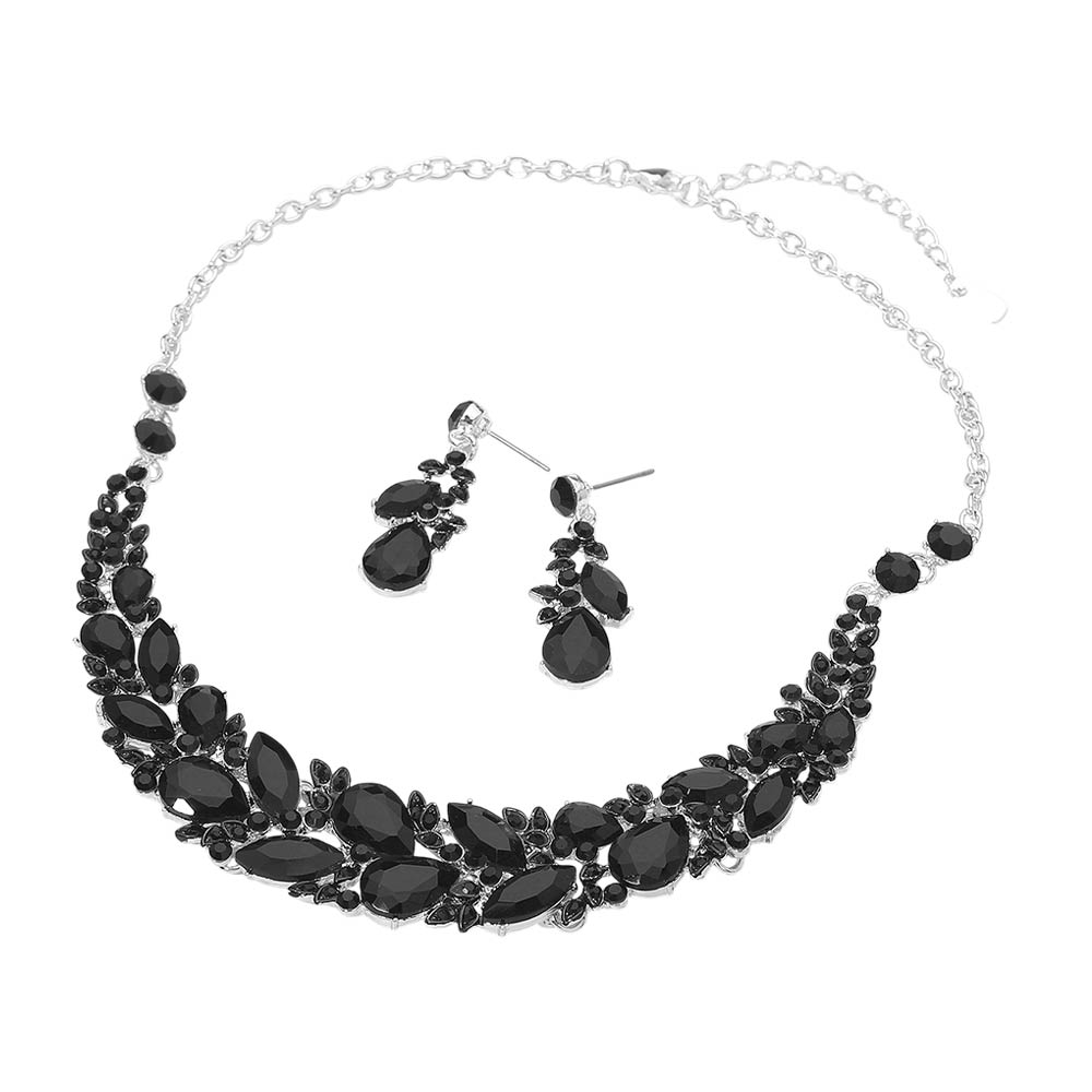 • Elegant statement necklace and matching earring set designed to elevate formal and evening looks. Featuring layered crystal accents and a graceful silhouette, this coordinated set adds dramatic sparkle and refined style, making it ideal for special occasions, events, or standout gifting.