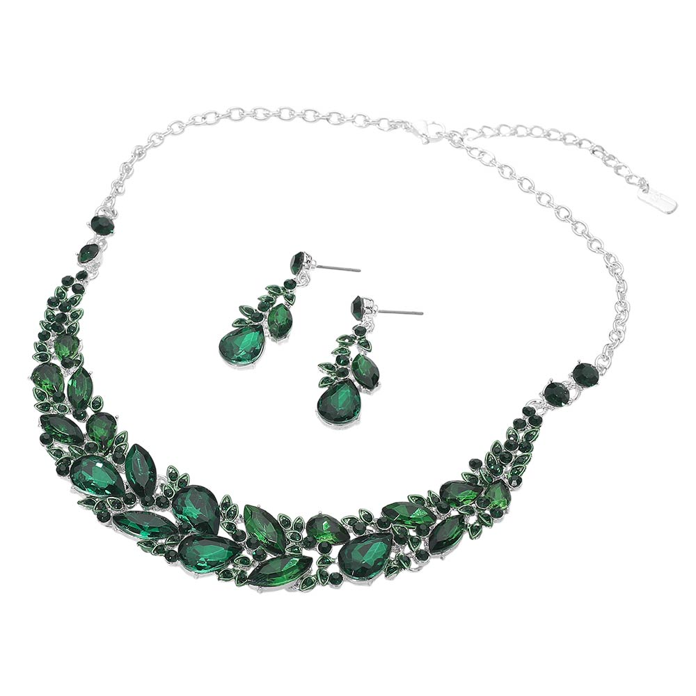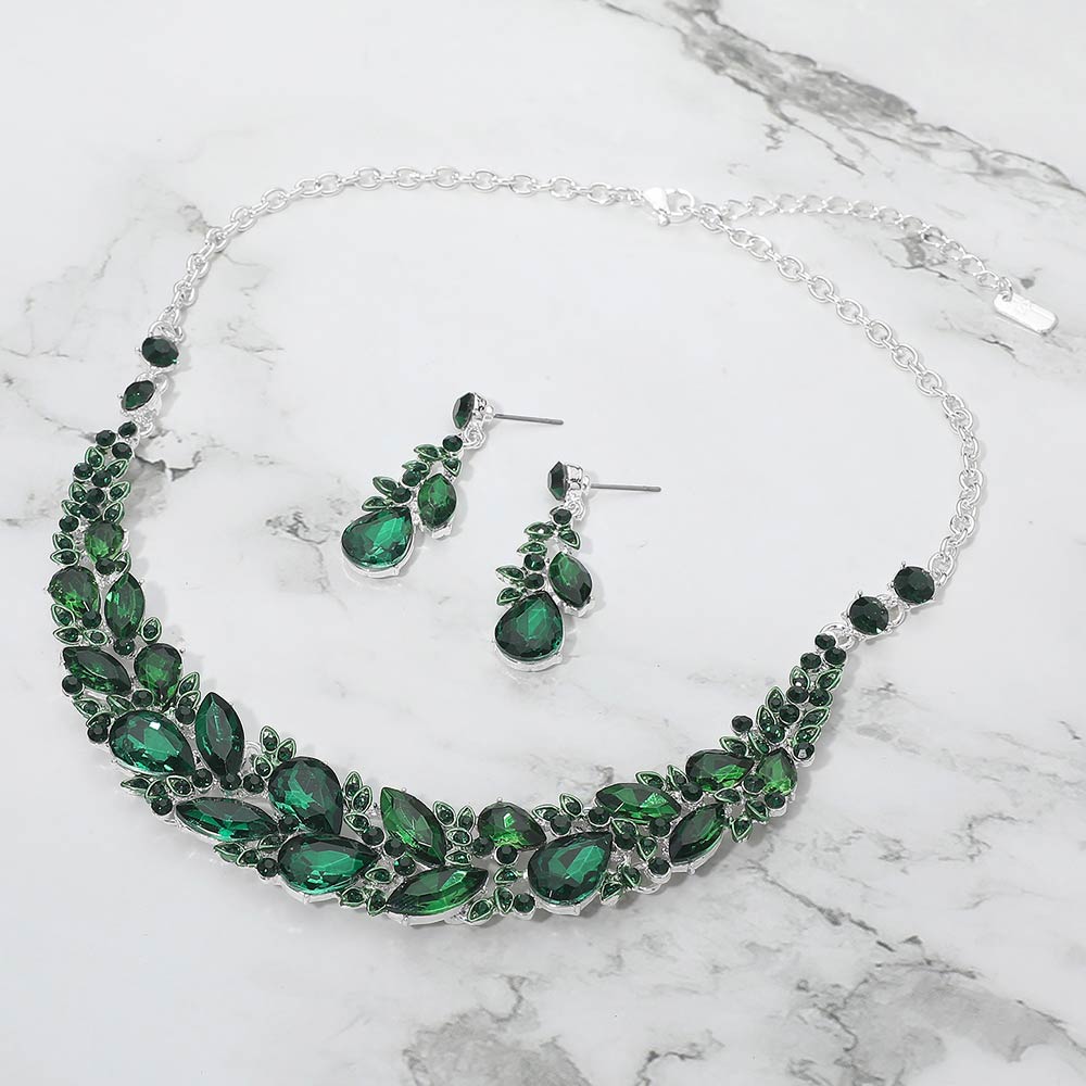 • Elegant statement necklace and matching earring set designed to elevate formal and evening looks. Featuring layered crystal accents and a graceful silhouette, this coordinated set adds dramatic sparkle and refined style, making it ideal for special occasions, events, or standout gifting.