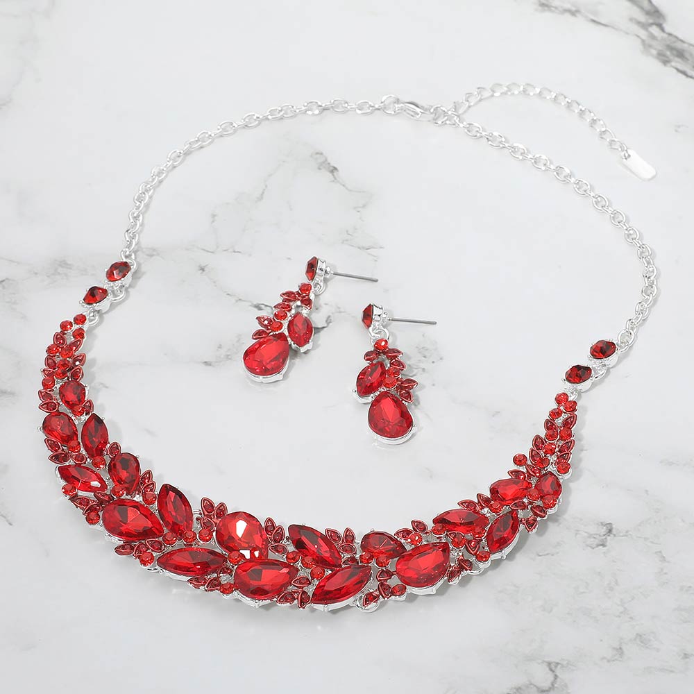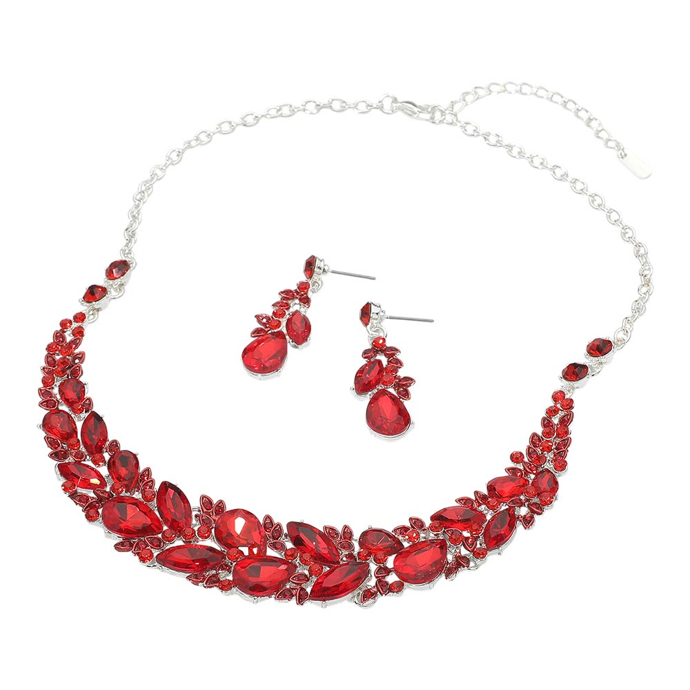Details • Necklace Size : 18.5" + 2.75" L • Decor Size : 0.8" L • Earrings Size : 1.7" L • Elegant statement necklace and matching earring set designed to elevate formal and evening looks. Featuring layered crystal accents and a graceful silhouette, this coordinated set adds dramatic sparkle and refined style, making it ideal for special occasions, events, or standout gifting.