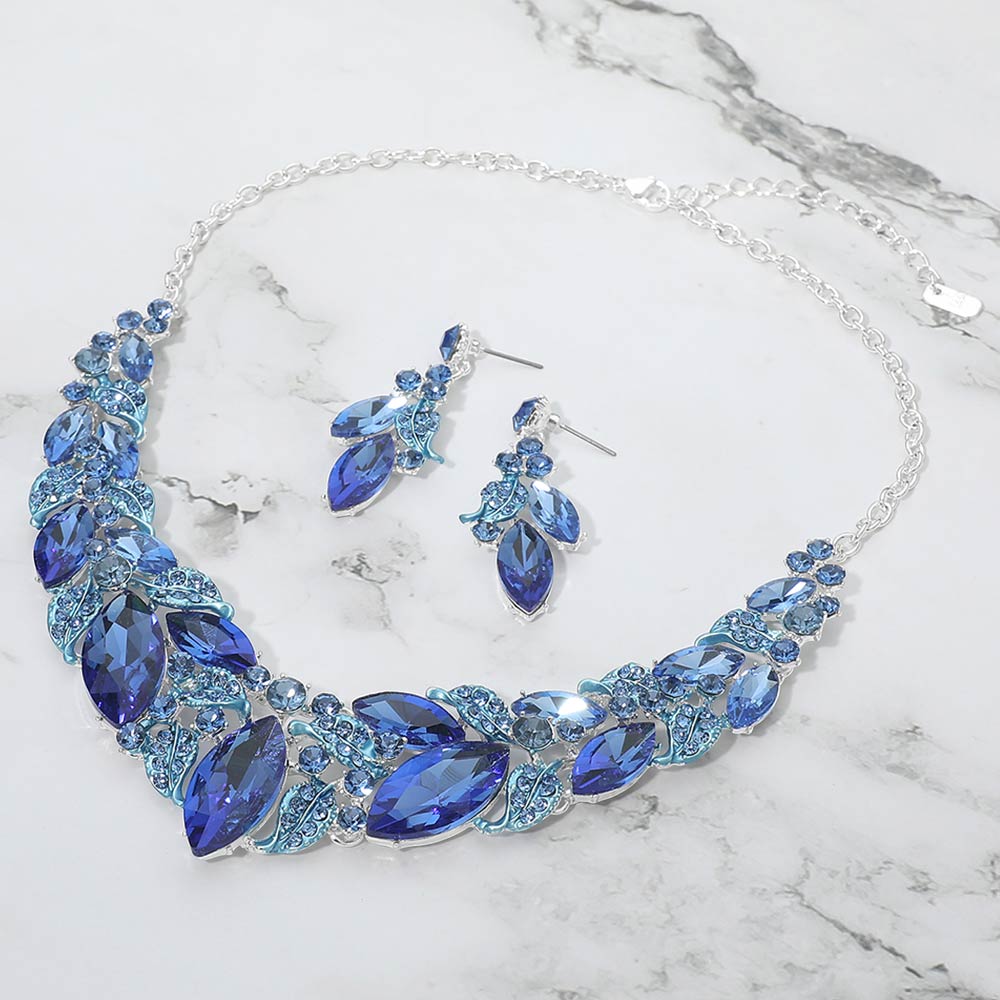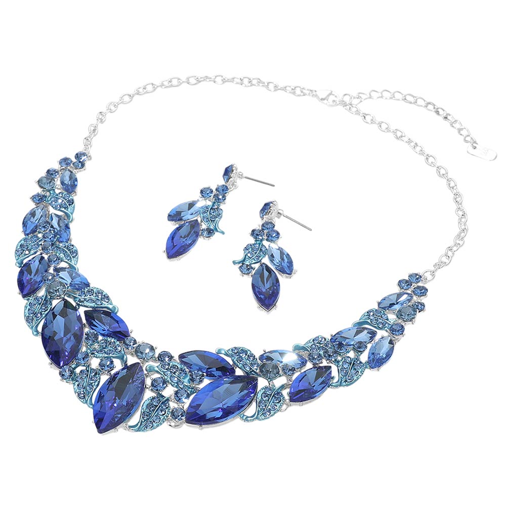 Marquise Stone Cluster Leaf Embellished Evening Necklace