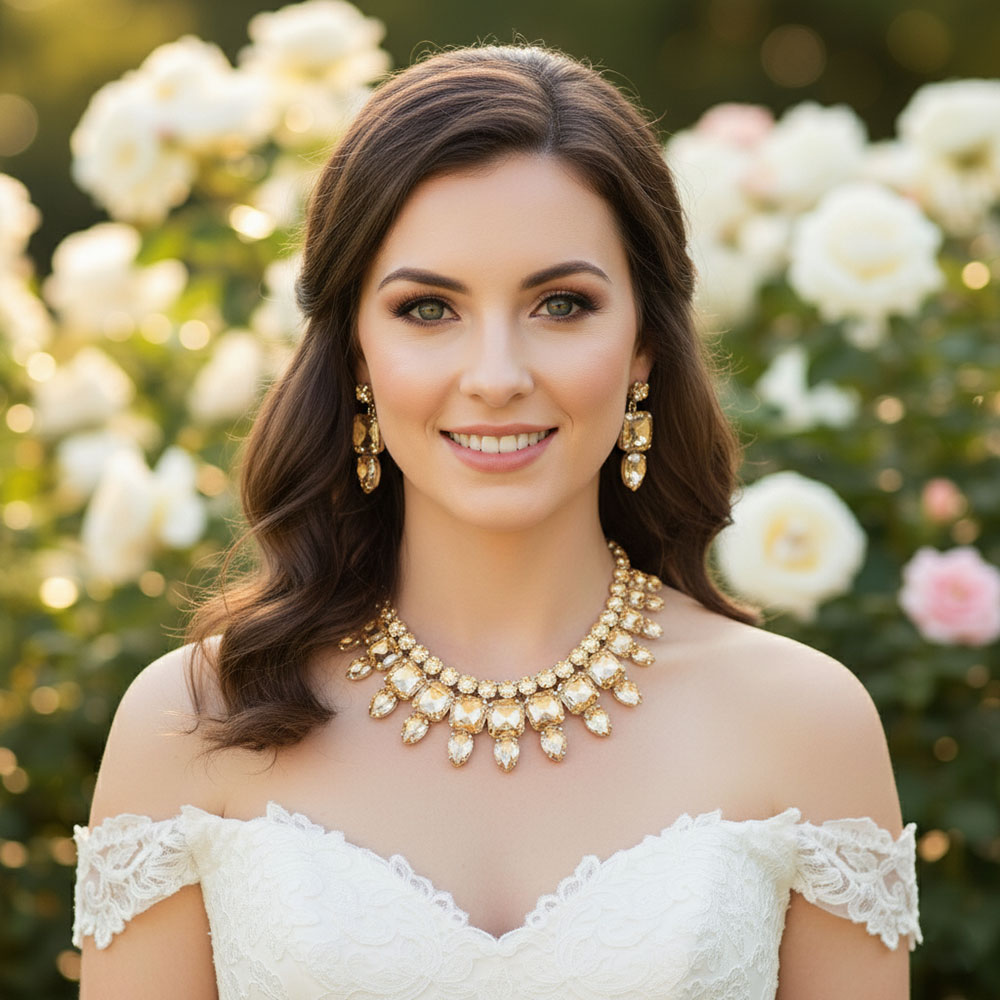 • Stunning statement jewelry set featuring a dramatic necklace and matching earrings adorned with large gemstones. Perfect for special occasions, parties, or evening events, adding glamour and sophistication to any outfit. A show-stopping accessory for an elegant, confident look.