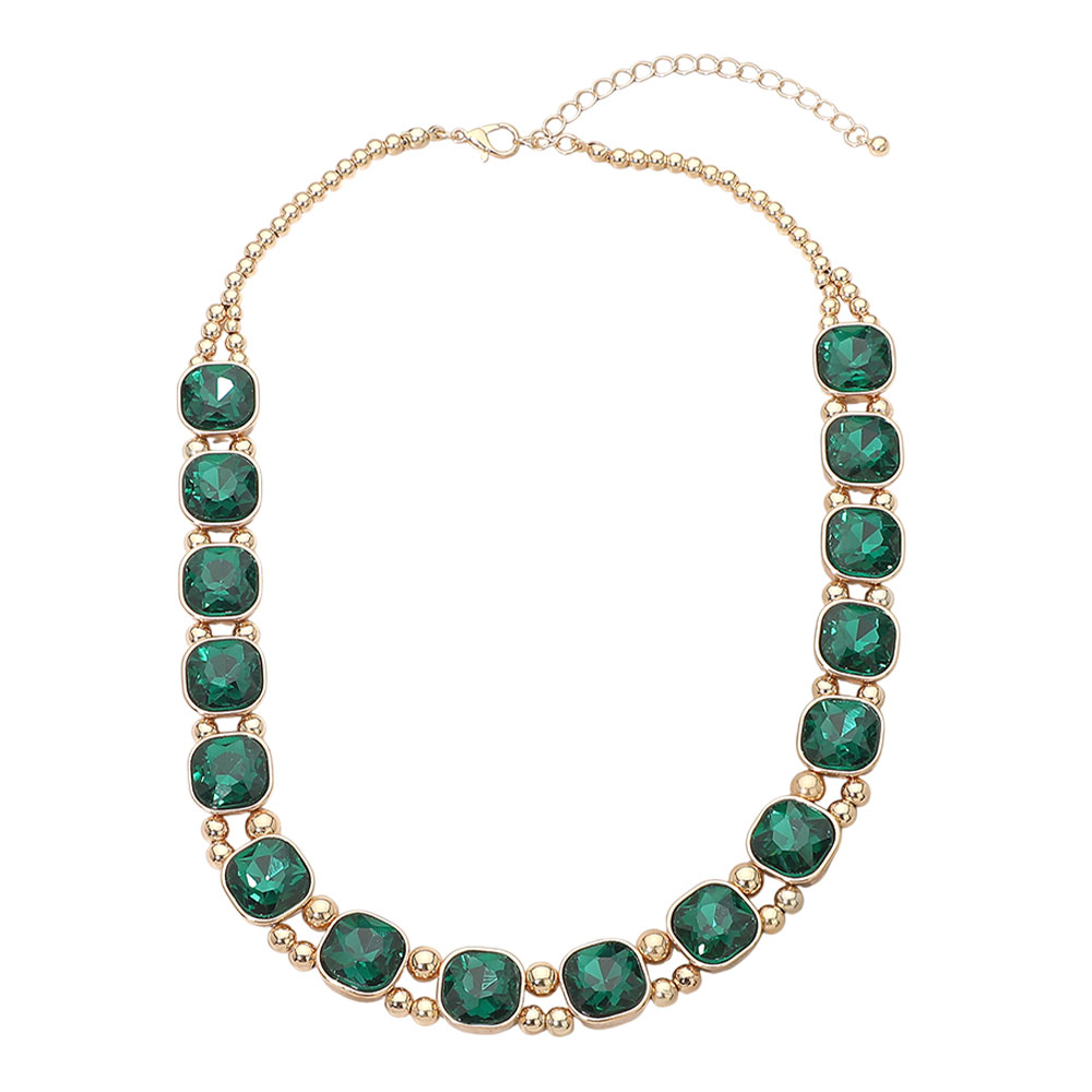 Square Faceted Stone Bezel Link Evening Necklace Square Faceted Stone Bezel Link Evening Necklace Square Faceted Stone Bezel Link Evening Necklace