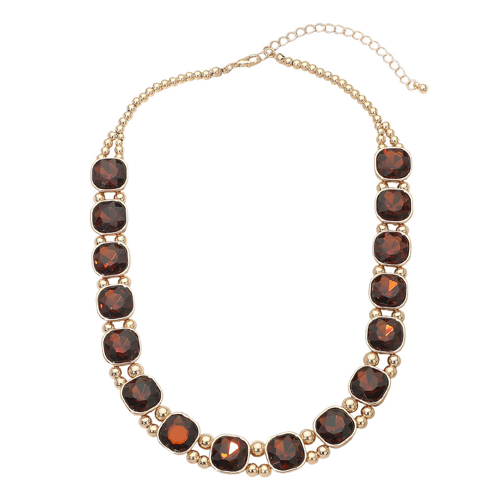 Square Faceted Stone Bezel Link Evening Necklace Square Faceted Stone Bezel Link Evening Necklace Square Faceted Stone Bezel Link Evening Necklace
