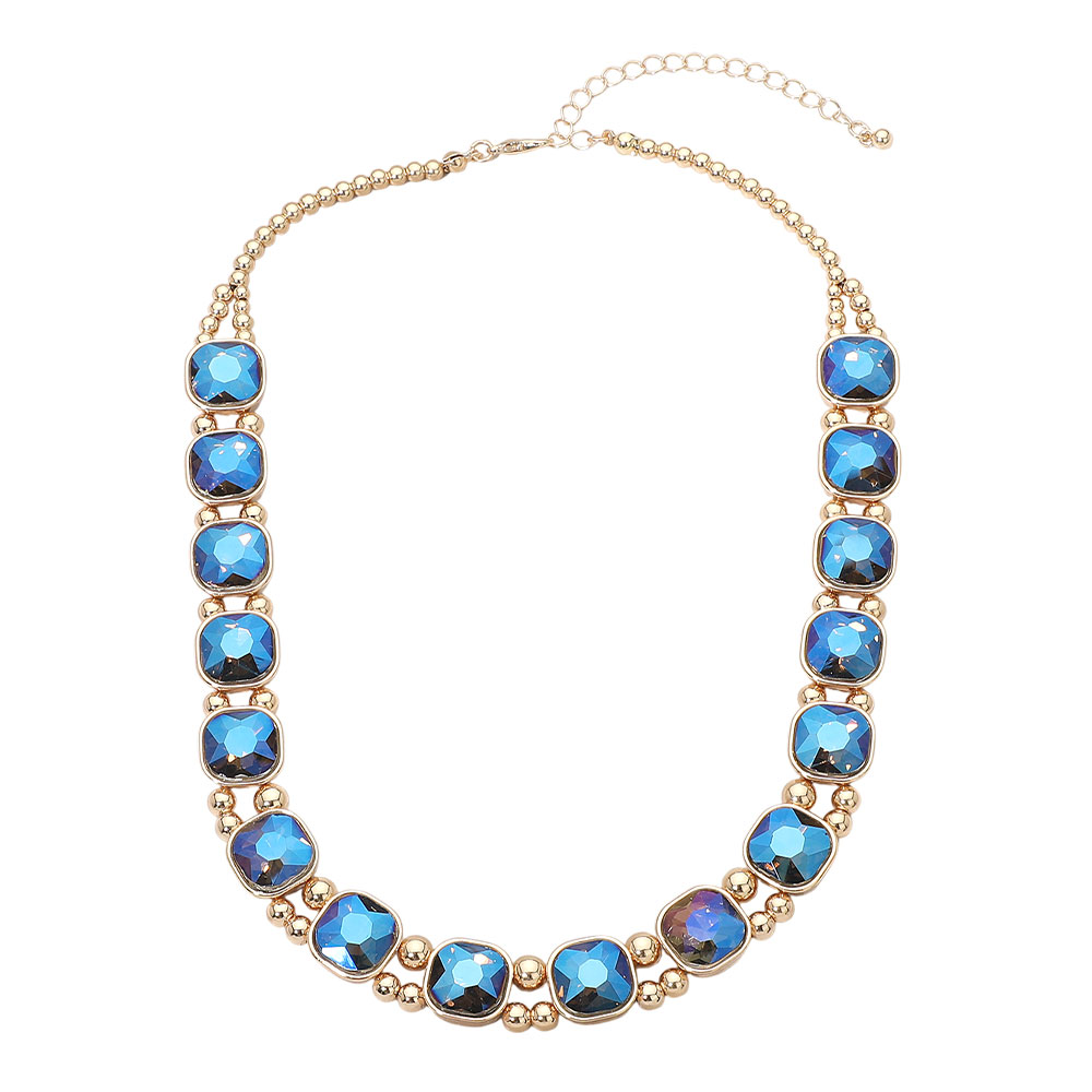 Square Faceted Stone Bezel Link Evening Necklace Square Faceted Stone Bezel Link Evening Necklace Square Faceted Stone Bezel Link Evening Necklace