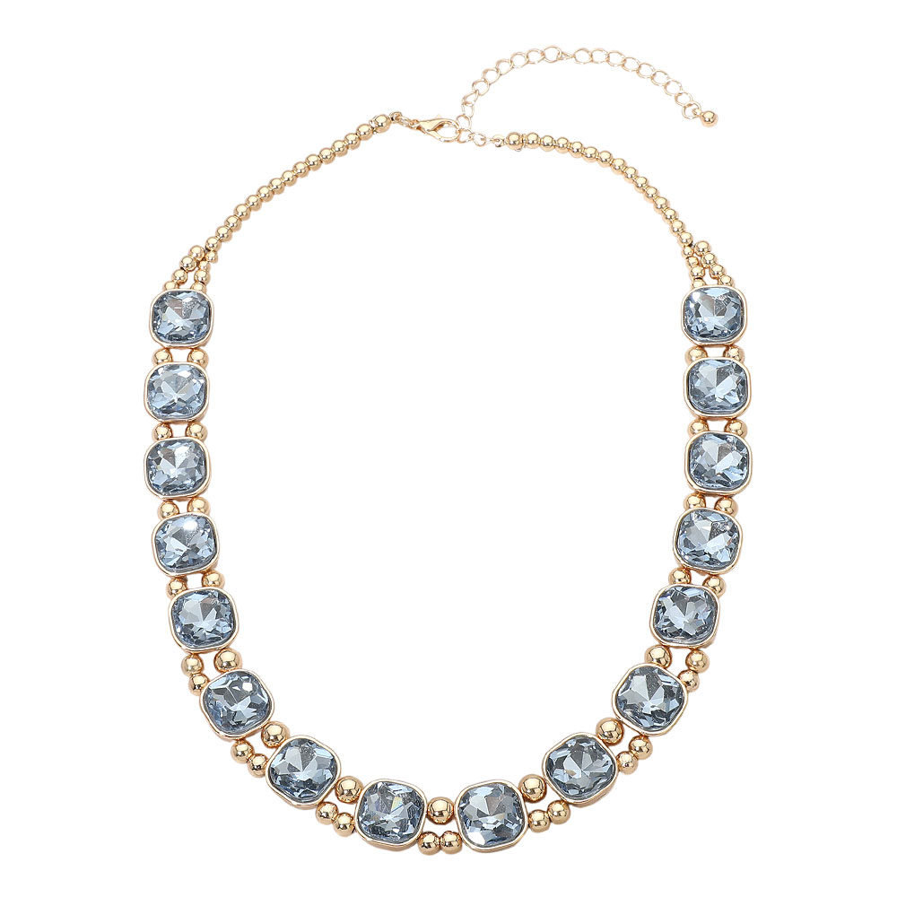 Square Faceted Stone Bezel Link Evening Necklace Square Faceted Stone Bezel Link Evening Necklace Square Faceted Stone Bezel Link Evening Necklace