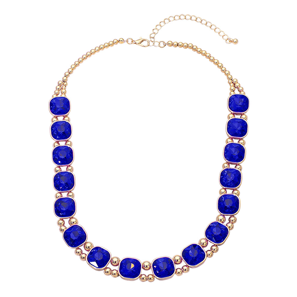 • Elegant linked necklace featuring evenly spaced square-cut stones framed by polished metal accents. Designed with an adjustable chain for versatile styling, this piece adds refined sparkle to everyday looks, special occasions, and layered jewelry collections, making it a timeless addition for retail displays and gifting.