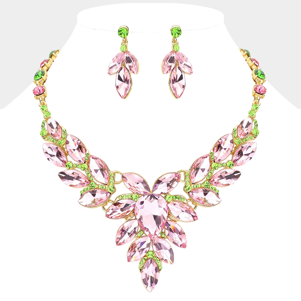 Teardrop Center Marquise Stone Cluster Evening Necklace